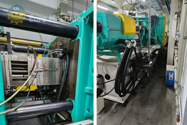 Machine de moulage par injection avec une force de fermeture de 300 tonnes et un diamètre de vis de 70 mm. La machine a 45 531 heures de travail, est proposée “en l’état” et est disponible pour une inspection en cycle sec. Marque et modèle : Arburg Allrounder 720 S 300-1300- Force de serrage : 300T