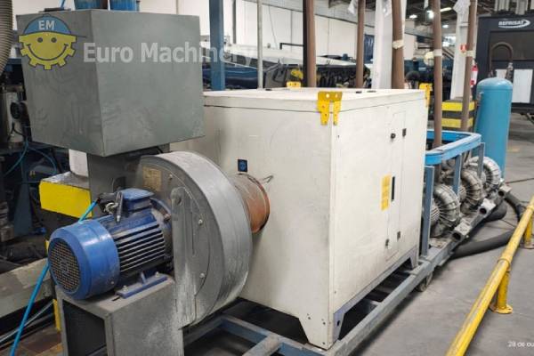 Ligne d’extrusion de feuilles creuses en PP de BAUSANO (MD 158/30) conçue pour produire des feuilles jusqu’à 2 200 mm de largeur et 2-6 mm d’épaisseur (jusqu’à 10 mm avec changement de filière), avec une capacité de 800 kg/h. Elle comprend une extrudeuse bi-vis, une filière plate, un changeur hydraulique de tamis, une pompe à engrenages, une table de calibrage, des unités de traction, un four, un traitement corona, des unités de refroidissement, d’ébarbage, de coupe et un système d’aspiration. Marque et modèle: BAUSANO MD 158/30 Largeur de la feuille: Max 2.200 mm Matériaux à traiter: PP Épaisseur du matériau: Min 2 mm – Max 6 mm (prêt à aller jusqu’à 10 mm avec un changement de matrice ) Production: PP Feuille creuse jusqu’à 800 kg/hora en 1000 g/m². Extrudeuses: Extrudeuse à deux vis BAUSANO MD 158/30 Filière plate: 2.200 mm de large Accessoires:- Trémie en acier de séchage
