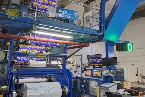 CERUTTI RB 908 Imprimante hélio permettant d’imprimer 10 couleurs sur PE ; PP, OPP, PET et papier, largeur d’impression 1180 mm Imprimante hélio utilisée dans le secteur de l’emballage flexible et de l’impression de films pour la production d’imprimés multicolores à haute résolution. Fabricant : Cerutti BOBST Modèle : RB 908 M4 Nombre de couleurs : 10 couleurs Matériau à imprimer : PE, PP, OPP, PET, papier Largeur d’impression : 1180 mm Largeur du matériau : 1200 mm Largeur de bande minimale : 700 mm Max. Diamètre du rouleau : 800 mm Poids max. Poids du rouleau : 1000 kg Vitesse mécanique : jusqu’à 300 m/min Nombre de séchoirs : 13 + avant séchoir Accessoires :- Décharge électrostatique (Eltex)