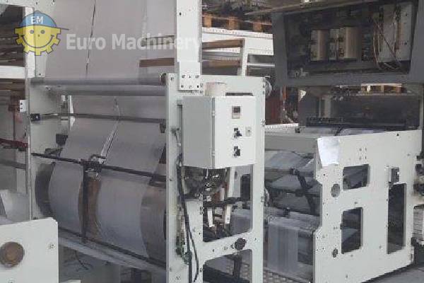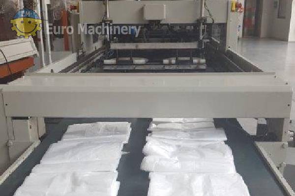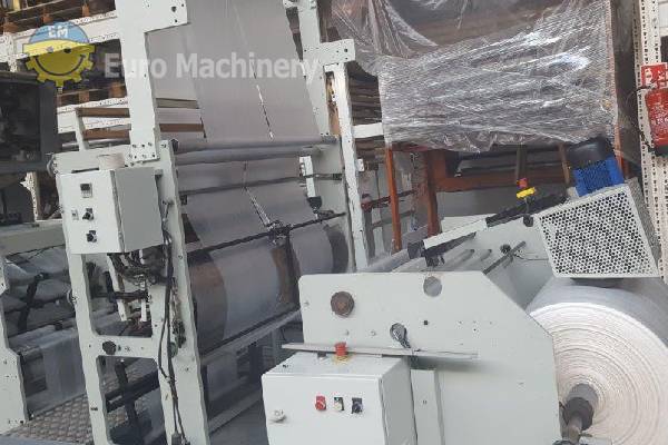 COEMTER TER BLOCK Machine à sacs de transport pour la production de sacs à soudure de fond et de sacs pour t-shirts jusqu’à 300 cpm. Sacs de 2 x 370 mm et longueur de sacs de 300 à 700 mm. Marque et modèle : COEMTER TER BLOCK 856 N Type de production : Sacs à soudure inférieure T-Shirt Matériau pouvant être traité : LDPE, HDPE, LLDPE Largeur de soudure (largeur du sac) : 2 x 370 mm Longueur de tirage (longueur du sac) : De 300 à 700 mm Nombre de voies : 2 Vitesse linéaire : jusqu’à 140 m/min Sacs par minute : Jusqu’à 300 cpm Autres détails :- Positionnement final des sacs : Tableau