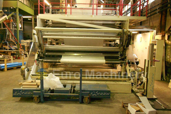 Ligne d’extrusion pour rubans Starlinger Starex avec double enrouleur. Extrudeuse pour rubans à utiliser dans les sacs tissés, filière de 1800 mm, largeur de travail jusqu’à 1650 mm. Marque et modèle : STARLINGER STAREX 1500 (enrouleur double) Type : Ligne d’extrusion pour rubans utilisés dans les sacs tissés Détails techniques : Ligne d’étirement de bande starEX 1500ES 120/33TD Largeur de la filière : 1800 mm Vitesse de fonctionnement maximale : 520 m/min Largeur de travail du filet jusqu’à : 1650 mm Composé de :- ALIMENTATEUR SOUS VIDE ET UNITÉ DE DOSAGE ELLIPTIQUE EXTRUDEUSE