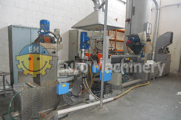 Marque et modèle: INTAREMA 2018TVEplus HG Twin LF Matériaux pouvant être traités: PE, PP, ABS, PS Diamètre de la vis: 180 mm Rendement : Jusqu’à 2400 kg/h, en fonction du type de matériau et du taux d’alimentation. Dégazage :- Double dégazage sous vide