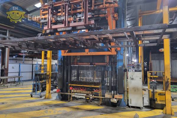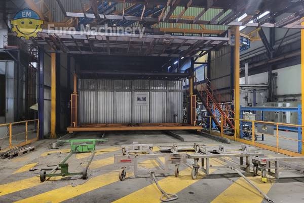 Ligne de peinture DÜRR KTL d’occasion pour le revêtement par cataphorèse dans la production de machines. Ce système automatisé comprend une ligne de préparation à plusieurs étapes, une application de peinture électrostatique et un four tunnel pour la polymérisation. En outre, il est équipé de systèmes de transport manuels et automatiques, d’une ultrafiltration et d’un refroidissement pour un débit efficace et un contrôle de l’environnement.Caractéristiques principales et points forts techniques