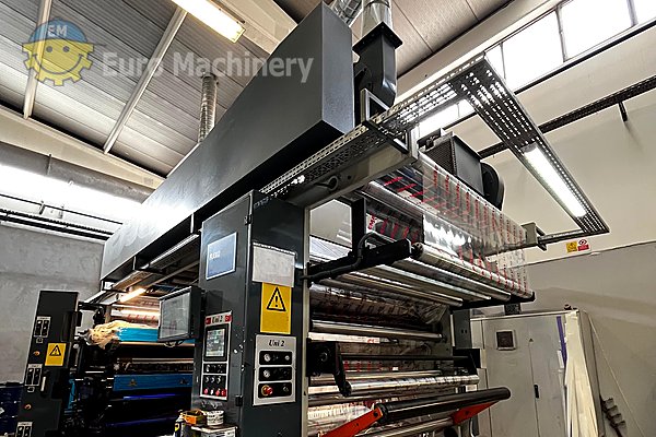 Boostez votre ligne de production avec cette presse flexo CI 6 couleurs d’occasion – largeur d’impression de 1600 mm, 300 m/min – prête à imprimer du PE, PP, OPP, PET et du papier. Comprend un registre motorisé, un système vidéo BST, des chambres à racle et plus encore.