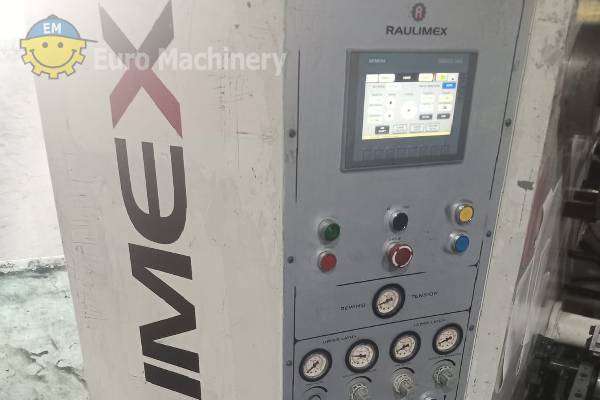 Raulimex est une bobineuse-découpeuse à rasoir avec 8 couteaux, capable de couper de 50 à 1300 mm. Marque et modèle : Raulimex 2 Matériau à découper : LDPE/LLDPE/BOPP/ Type de coupe (rasoir/rotatif) : Rasoir Nombre de couteaux de coupe : 8 Largeur de coupe : 50-1300mm Dérouleur :- Type de dérouleur : Hydraulique