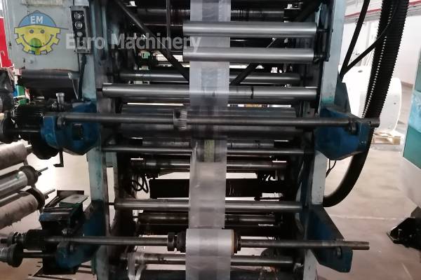 Remak Stand-alone Stack Flexo printer capable d’imprimer PE, PP, OPP, PET, ALU, PVC et papier en 2 couleurs, largeur d’impression 800 mm et répétition d’impression de 320mm à 600 mm. Presse d’impression à pile hors ligne avec séchage électrique Marque et modèle : Remak Nombre de couleurs : 2 couleurs Matériau à imprimer : PE, PP, OPP, PET, papier, ALU, PVC, Largeur d’impression : 800 mm Largeur du matériau : 800 mm Répétition de l’impression : 320 mm – 600 mm Vitesse mécanique : jusqu’à 130 m/min Dérouleur et enrouleur :- Enrouleur : Remontoir standard
